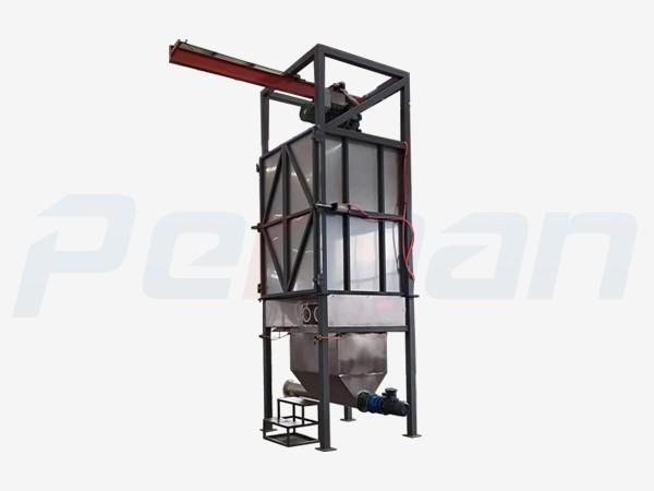 除塵裝置:全自動拆包機的除塵裝置為脈沖式除塵器集成,布置在自動拆包機上方,體積小,除塵效率高;上方設置快開檢修門,方便檢修及更換布袋;大流量脈沖噴吹閥,清灰干凈快速,保證除塵效率,延長布袋使用壽命。