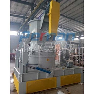 碳酸氫鈉通過失重螺旋喂料稱定量均勻喂料進入CAM空氣分級磨,通過高速旋轉(zhuǎn)的磨塊與齒圈形成碰撞,摩擦,剪切多種作用力下粉碎,粉碎后隨氣流進入分級區(qū),合格的物料通過分級輪進入煙道進行反應(yīng),粗料落入粉碎區(qū)繼續(xù)粉碎,顆粒的大小可調(diào)整分級輪的大小獲得。