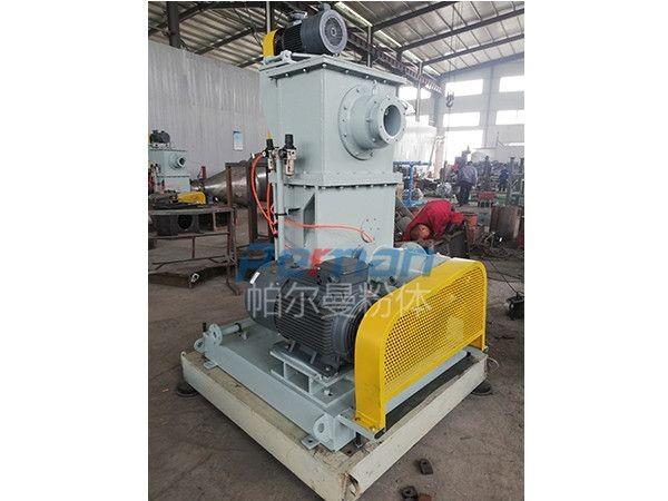 此流程中碳酸氫鈉從原料倉(cāng)通過(guò)變頻螺旋輸送機(jī)定量的供給下游的CAM-H系列空氣研磨機(jī)。所需的吸附劑的量可由脫硫前后的污染物濃度趨勢(shì)曲線(xiàn)計(jì)算。在螺旋輸送機(jī)和研磨機(jī)之間安裝旋轉(zhuǎn)閥,用于隔離氣流,以免氣流影響螺旋輸送機(jī)的定量進(jìn)料。碳酸氫鈉在分級(jí)磨中進(jìn)行研磨后,細(xì)粉由一臺(tái)物料輸送風(fēng)機(jī)輸送至煙氣管道。