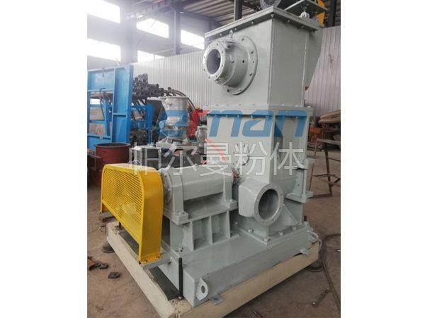 負壓空氣研磨系統(tǒng)的設備積垢問題經常是討論的焦點。設備的清洗,特別是輸送風機的清洗過于耗時。此外,在開機和關機過程中風機葉輪上的積垢還可能剝落,導致風機的振動及其運轉狀態(tài)的振蕩。因此可考慮由負壓流程改為正壓流程。在新的工作模式下風機安裝在分級磨之前,將工藝空氣壓入研磨系統(tǒng)。這種工作模式的優(yōu)點是研磨后的碳酸氫鈉不通過風機運輸,完全避免了風機的積垢問題。此外風機的耗電也有所降低,使經營成本更低,但是對設備的密封性能提出了更高的考驗,無論是設備的設計結構、加工精度及配合都有嚴格的要求,設備的造價成本也會更高。